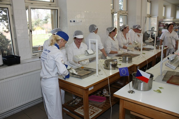 V rámci projektu Rozvoj manuálních zručností a praktických dovedností žáků oboru cukrář se konal v SOŠ a SOU obchodu a služeb Chrudim v tomto školním roce 2013/2014 další z řady vzdělávacích kurzů pro naše cukrářské druháky. Kurz Foukaný karamel probíhal 31.3.- 1.4. 2014. Vedla ho opět lektorka paní Věra Slezáková s panem Slezákem.