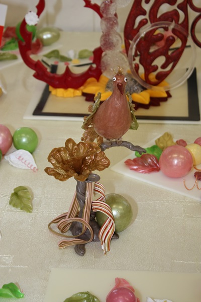 Naši druháci se seznámili se základními surovinami na výrobu foukaného karamelu, s pomůckami potřebnými na zpracování karamelu. Ve dvou dnech zvládli výrobu taženého a foukaného karamelu, naučili se vyrábět karamelové lístečky, modelovali kaly. Foukali karamelové koule, vyráběli spirálky a mašle z barveného karamelu. Společně sestavovali z vyrobených karamelových komponentů monument, zdobili růžemi, koulemi a spirálkami. Výrobky byly vystaveny a poté byly předány žákům certifikáty. Všichni žáci se při kurzu velice snažili, protože v příštím školním roce bude probíhat rozšiřující kurz s názvem Umělecký karamel pouze pro deset nejzručnějších cukrářů z naší školy.