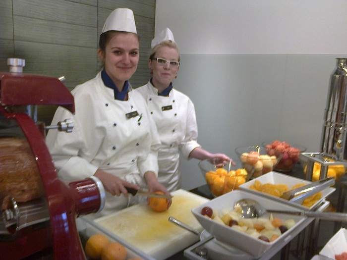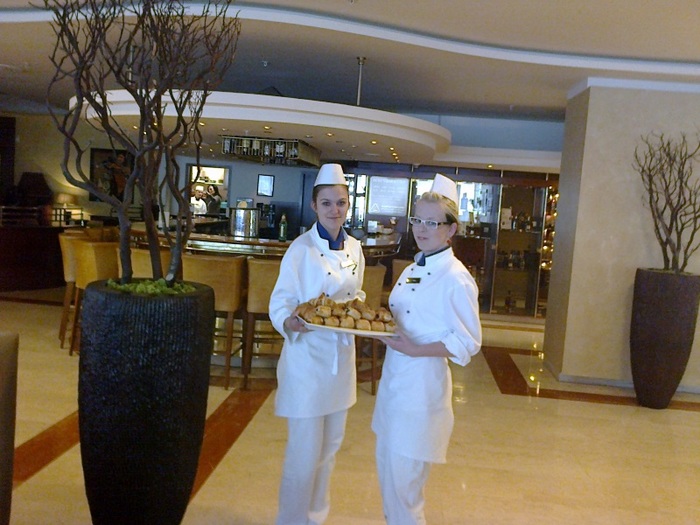 Součástí projektu Rozvoj manuálních zručností a praktických dovedností žáků oboru cukrář jsou i stáže v provozovnách sociálních partnerů v Praze. Od 7. 4. do 2. 5. 2014 naše žákyně Zuzana Červenková a ErikaĎurinová z druhého ročníku absolvovaly stáž v cukrárně hotelu InterContinentál Praha. Pracovaly přímo pod vedením pana šéf cukráře . Vzhledem k tomu, že nikdy ani jedna zatím nepracovala v reálném prostředí cukrárny s dospělými zaměstnanci, ale pouze v naší školí cukrárně se svými učitelkami a spolužáky, měly velké obavy, jak tuto radikální změnu zvládnou. Po první týdnu se jejich obavy rozplynuly. Do kolektivu hotelové cukrárny skvěle zapadly. Instruktoři si pochvalovali jejich pracovitost a zručnost, takže děvčata dostala možnost zapojit se jak do přípravy nejrůznějších snídaňových moučníků, tak do složitější přípravy restauračních moučníků a výroby moučníků na nejrůznější hotelové akce. Jak Zuzana, tak Erika si vyzkoušely práci před hotelovými hosty. Připravovaly snídaňové moučníky přímo na přání jednotlivých zákazníků a komunikovaly v anglickém jazyce. Obě dvě byly nadšené nejenom z fantastické zkušenosti, kterou jim stáž přinesla, ale z celé Prahy, kterou si ve volném čase prošly a navštívily všechna známá turistická místa.