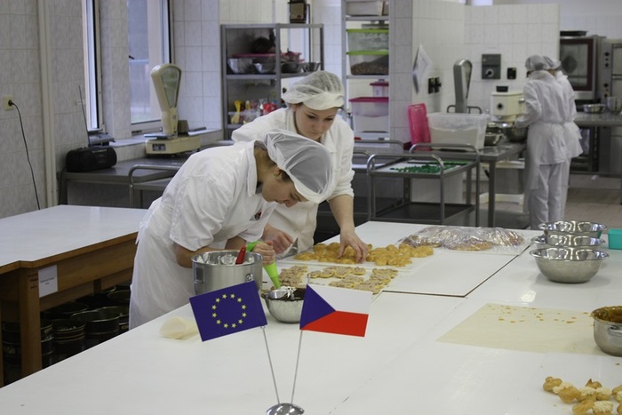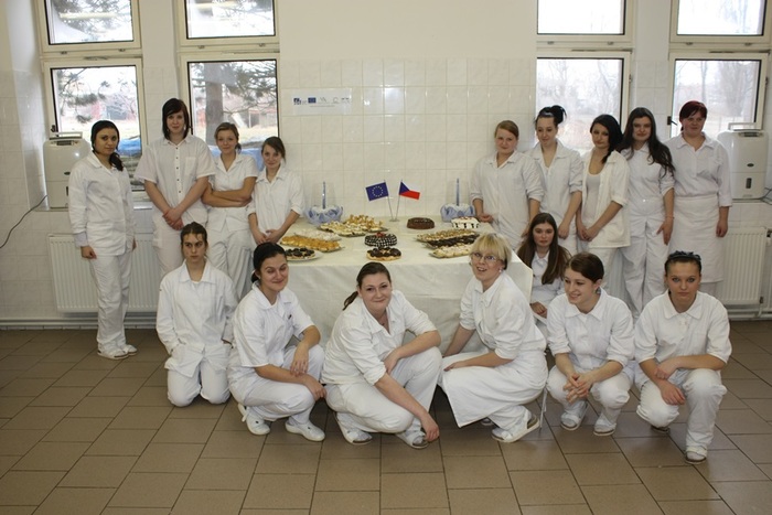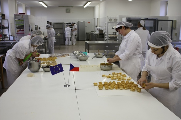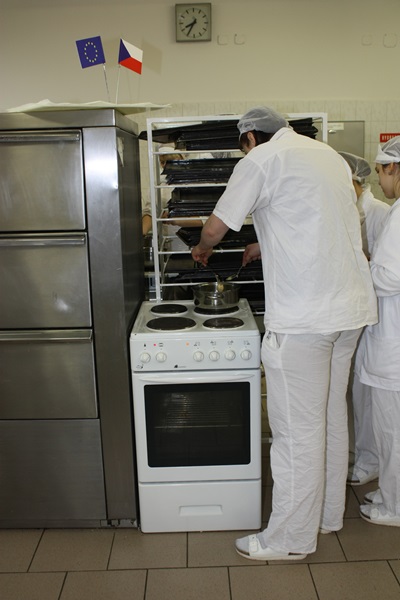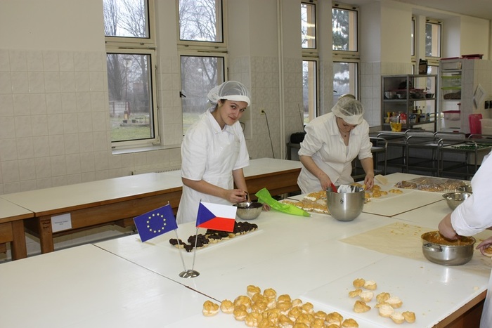Díky projektu Rozvoj manuálních zručností a praktických dovedností žáků oboru cukrář absolvovali žáci prvního ročníku cukrářského oboru kurz Pálená hmota, který vedla p. učitelka odborného výcviku Petra Doležalová ve dnech 11.3. -12.3. 2013. Žáci se seznámili s technologickým postupem přípravy pálené hmoty. Naučili se připravovat věnečky, větrníky, banánky, bertíky, labutě, staročeský povidloň, jahodovo – tvarohový dort, profiterolky, ledové větrníčky. Připravili náplně, vařili karamel kulér. Druhý den vyrobili věnec Paříž – Brest a plnili a potahovali jednotlivé výrobky.