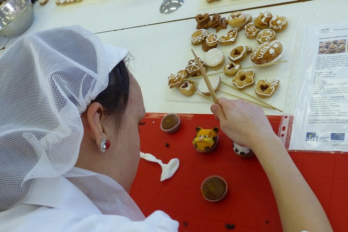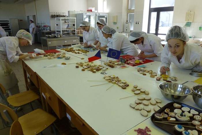 Projekt Rozvoj manuálních zručností a praktických dovedností žáků oboru cukrář umožňuje rozvíjet své dovednosti v cukrařině i našim třeťákům.Ve dnech 10.3. – 11.3. 2014 probíhal v naší školní cukrárně kurz Perníky – zdobení, umělecké perníky. Kurz pro žáky třetího ročníku připravila a vedla paní učitelka odborného výcviku Petra Tatíčková.
