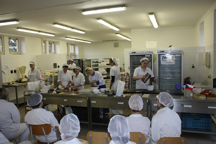 Děvčata měla možnost vidět a prakticky si vyzkoušet výrobu náplní z čerstvých surovin, temperování čokolády, vylévání fotem na pralinky, víčkování pralinek. Naučily se připravovat jeden druh s názvem formovaná pralinka a druhý druh tzv. krájený- polévaný (máčený) bonbón. Vyráběly čokoládové monumenty a ručně připravovaly čokoládové bonboniéry. Děvčata kurz velice zaujal a spoustu užitečných nápadů na zpracování čokolády využijí v naší školní cukrárně.