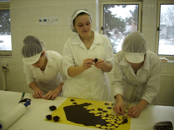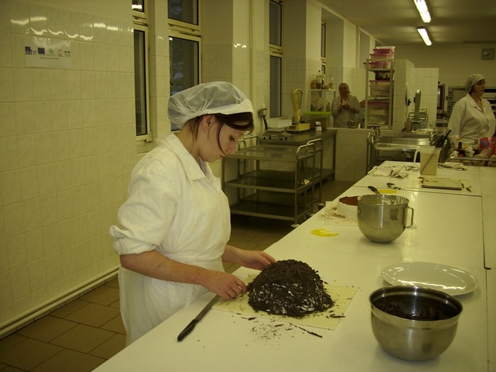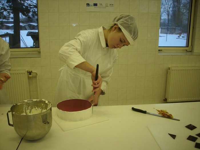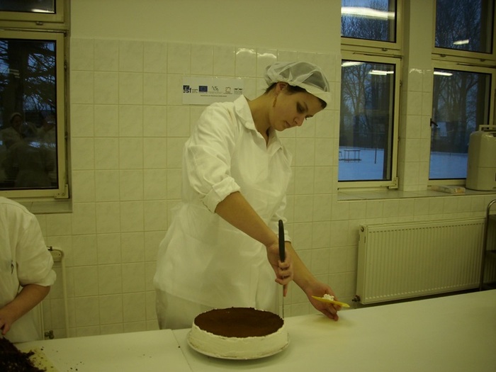 Pod vedením učitelky OV Jany Matějů připravovali žáci nejenom klasické smetanové dorty jako je Pařížský, Nugátový, Kubánský, ale připravili i několik dalších ne příliš známých smetanových dortíků různých chutí. Příkladem je Kapucínek, Italský dort, Smetanovo stračatelový, Švestkovo jablečný, Kremeš dort, Tvarohovo malinový, čokoládová kopule, Jahodový a další. Účastníci kurzu si vyzkoušeli i výrobu čokoládových ozdob – vylévání a slepování koulí, přípravu dvojbarevných čoko koulí, výrobu čoko květin – různé techniky, lístky, hobliny, spirály, čoko mašle, sestavovali vhodné dekorace na jednotlivé dorty. Všichni žáci byli nadšeni novými technikami, množstvím surovin a možnostmi, které skýtá příprava těchto moučníků, které jsou stále více oblíbené mezi zákazníky naší školní cukrárny.
