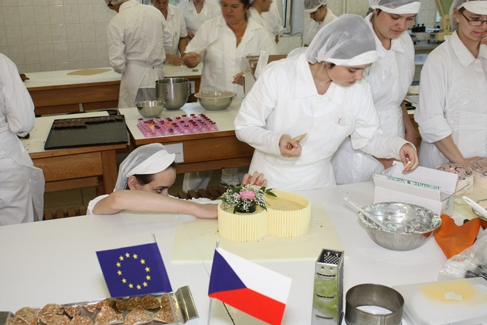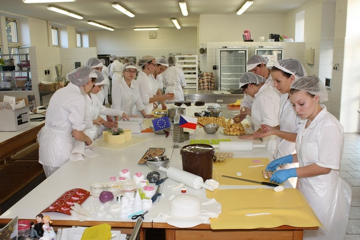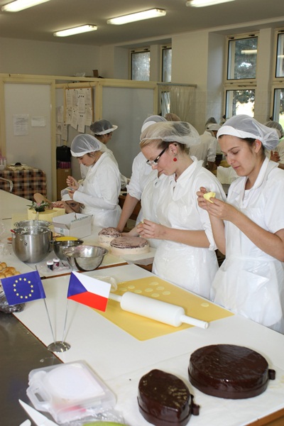 První pracovní den byl jako již tradičně věnován pečení korpusů, přípravě náplní a polev a promazávání a zakládání dortů. Během tohoto dne se připravovaly i pečené ozdoby a dekorace z modelovacích hmot. Druhý den byl věnován dohotovování dortů, potahováním modelovacími hmotami, kdy byly použity modelovací mléčná hmota, plastická čokoláda, modelovací cukr White icing. Kurz byl pro všechny žáky velkým přínosem, vše, co se naučili mohou použít ve svém budoucím povolání cukráře.