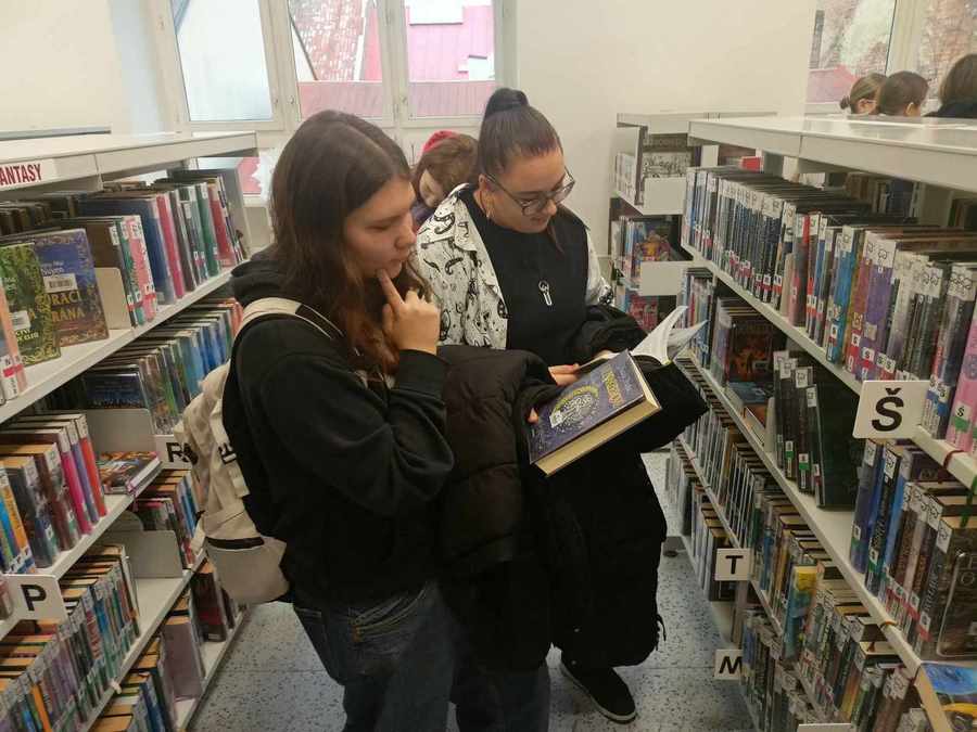 Akce začala kvízem, který byl připraven speciálně pro žáky. Ti pracovali ve skupinkách a soutěžili o sladkou odměnu, kterou získali vítězové. Po skončení kvízu následovala prohlídka knihovny. Paní knihovnice žákům ukázala, jaké knihy knihovna nabízí, a poradila jim, jak se orientovat v jednotlivých odděleních, aby si našli tituly vhodné pro jejich věkovou kategorii. Tato exkurze byla skvělou příležitostí, jak se žáci seznámili s bohatým knihovním fondem a získali praktické tipy pro výběr knih.