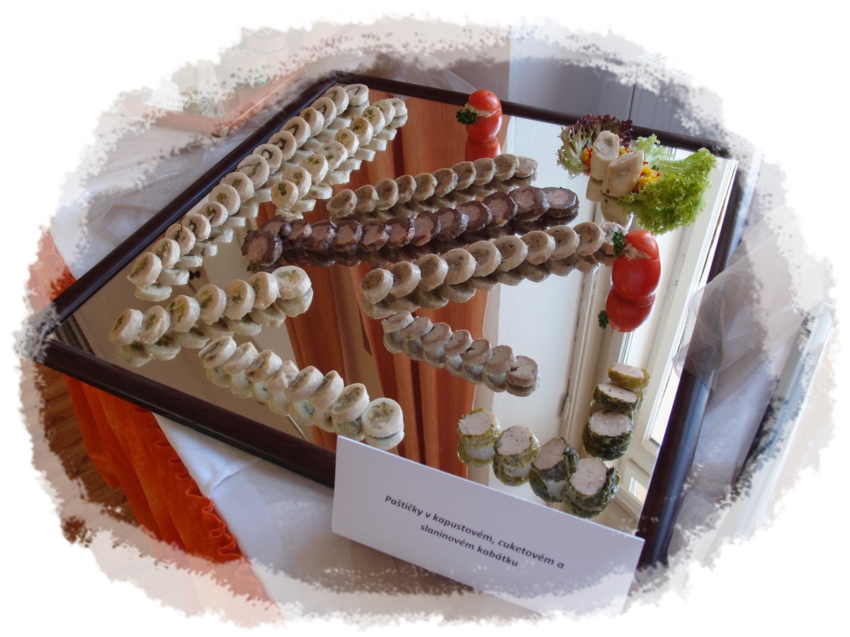 A do třetice ... ještě Kurz studené kuchyně pro žáky ze třídy K3 a G3 pod vedením paní učitelky odborného výcviku Jany Kubatové. Kurz proběhl ve čtvrtek a v pátek 17. a 18. ledna a výrobky jste si mohli prohlédnout na Dni otevřených dveří naší školy.