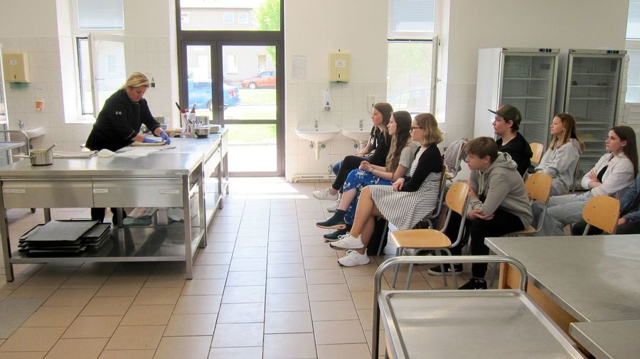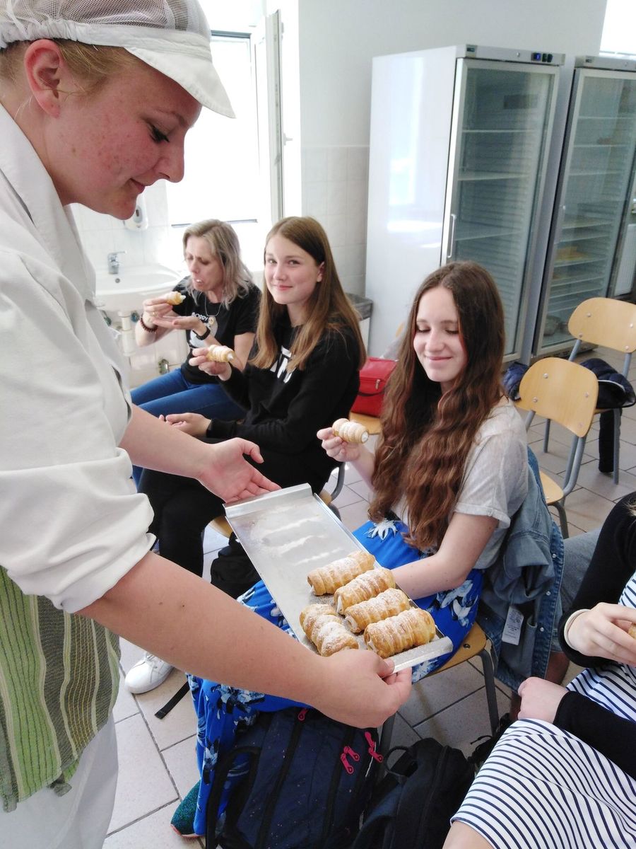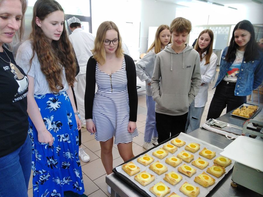 Učitelka OV Jana Matějů se svými svěřenci předvedla výrobu listového těsta a poté společně připravili pro děvčata a chlapce ze ZŠ ukázku sladkých a slaných pochoutek, včetně jejich degustace. Dle reakcí se ukázky hotových výrobků moc líbily a také všem moc chutnaly. Domů si všichni odnášeli inspiraci, jak připravit sladké i slané pohoštění pro své blízké z jednoho druhu těsta.