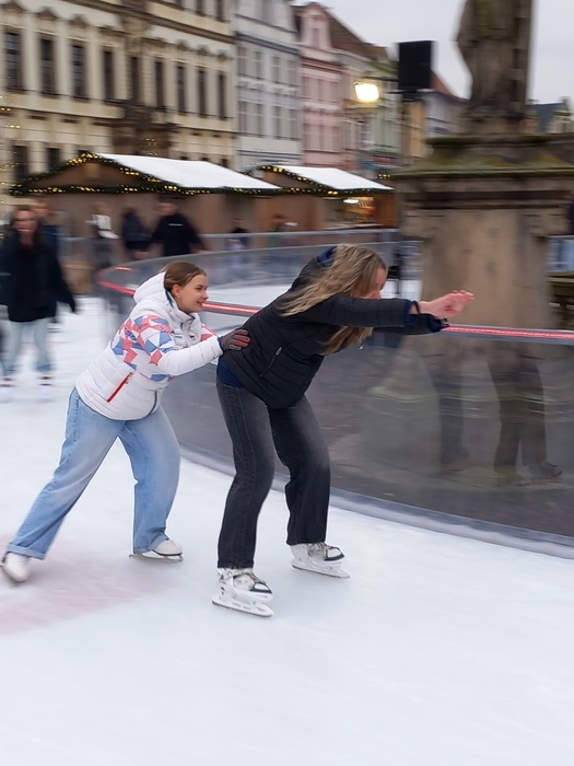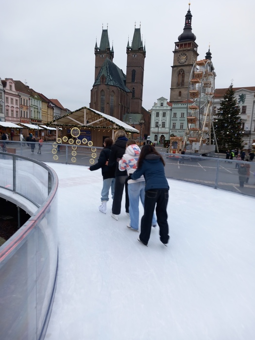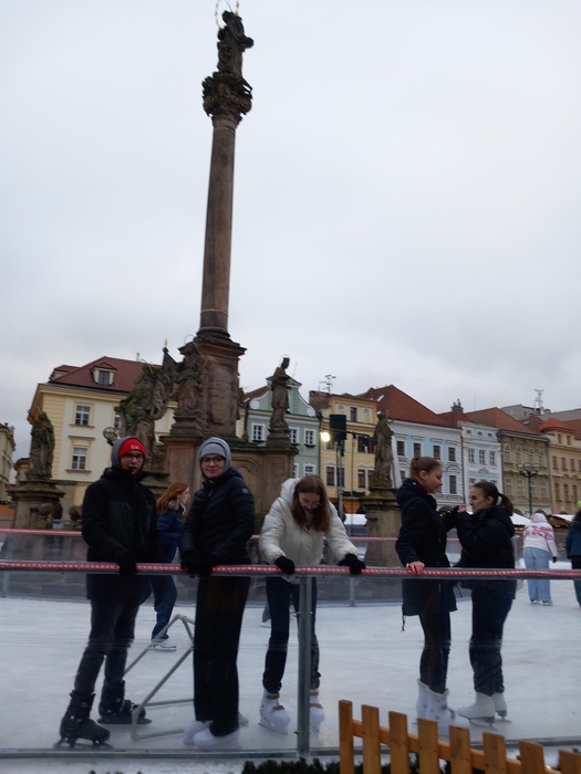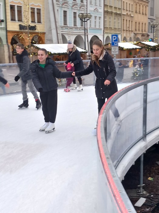 Čekání na otevření jsme si zkrátili prohlídkou vánočního trhu a každopádně bylo fajn po delší pauze zase oprášit svoje nebo vypůjčené brusle. Kroužili jsme na Velkém náměstí kolem Mariánského sloupu a bylo to super!!! Všem doporučujeme v případě, že nevíte, jak si zpestřit vánoční prázdniny. Šťastné a veselé přeje G3 a paní učitelka Pánková!