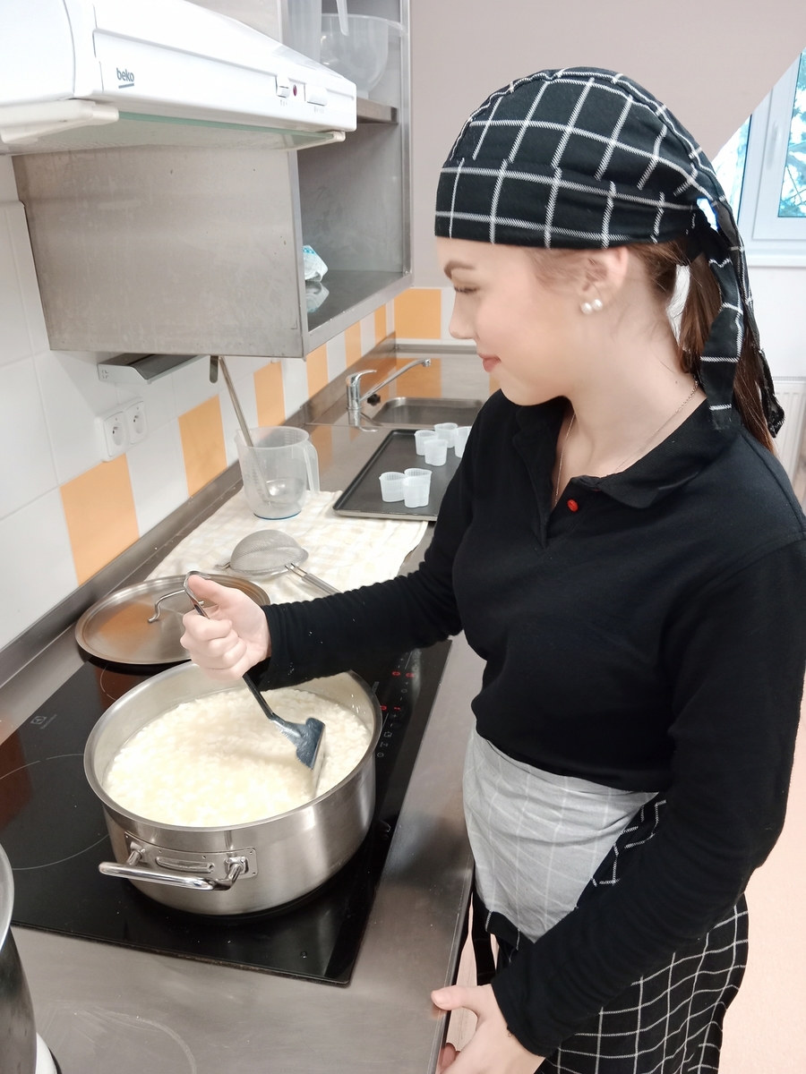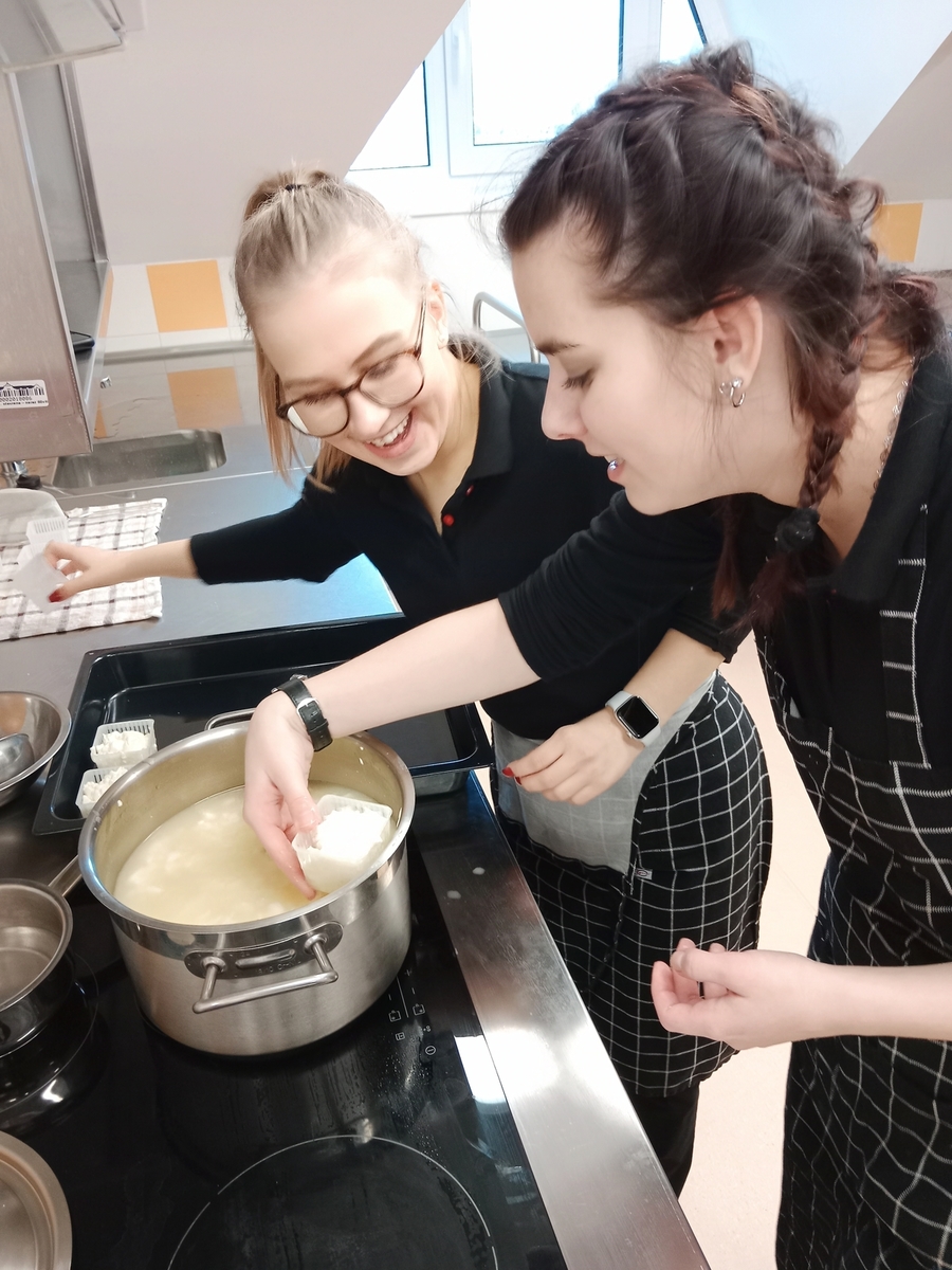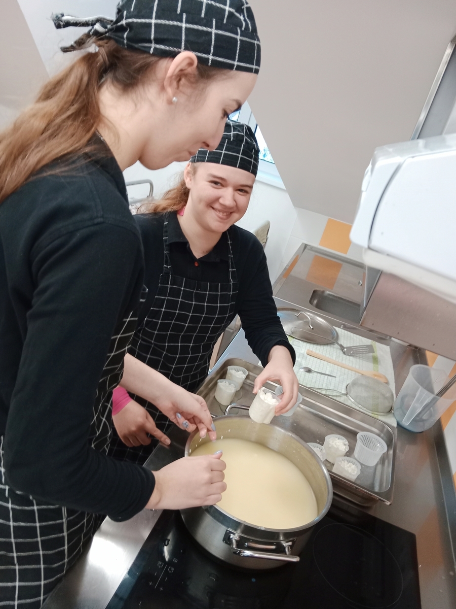 To vše jsme 20. prosince završili vlastní výrobou sýrů. Vyrobili jsme farmářské sýry, tažené sýry a ricottu.