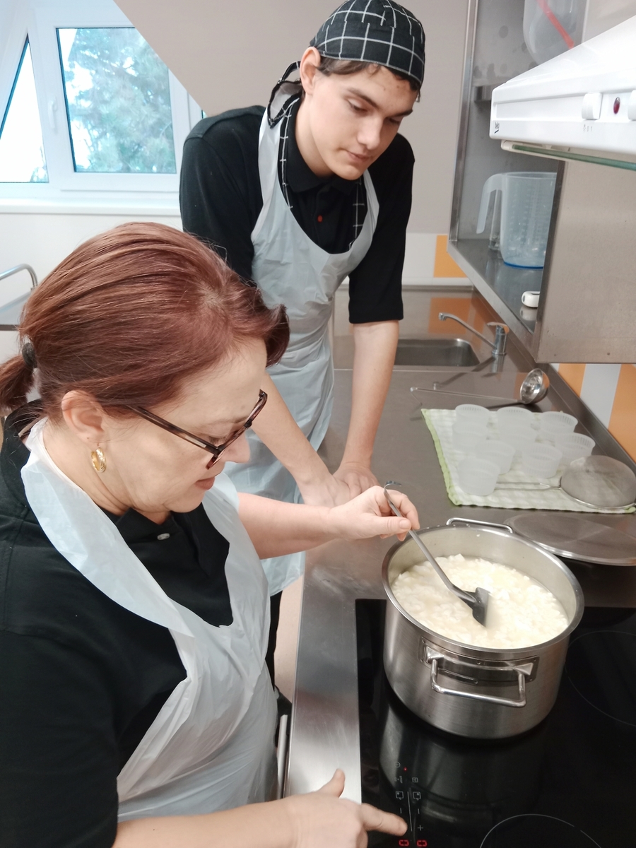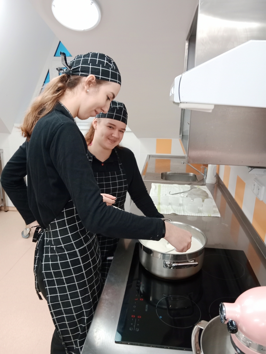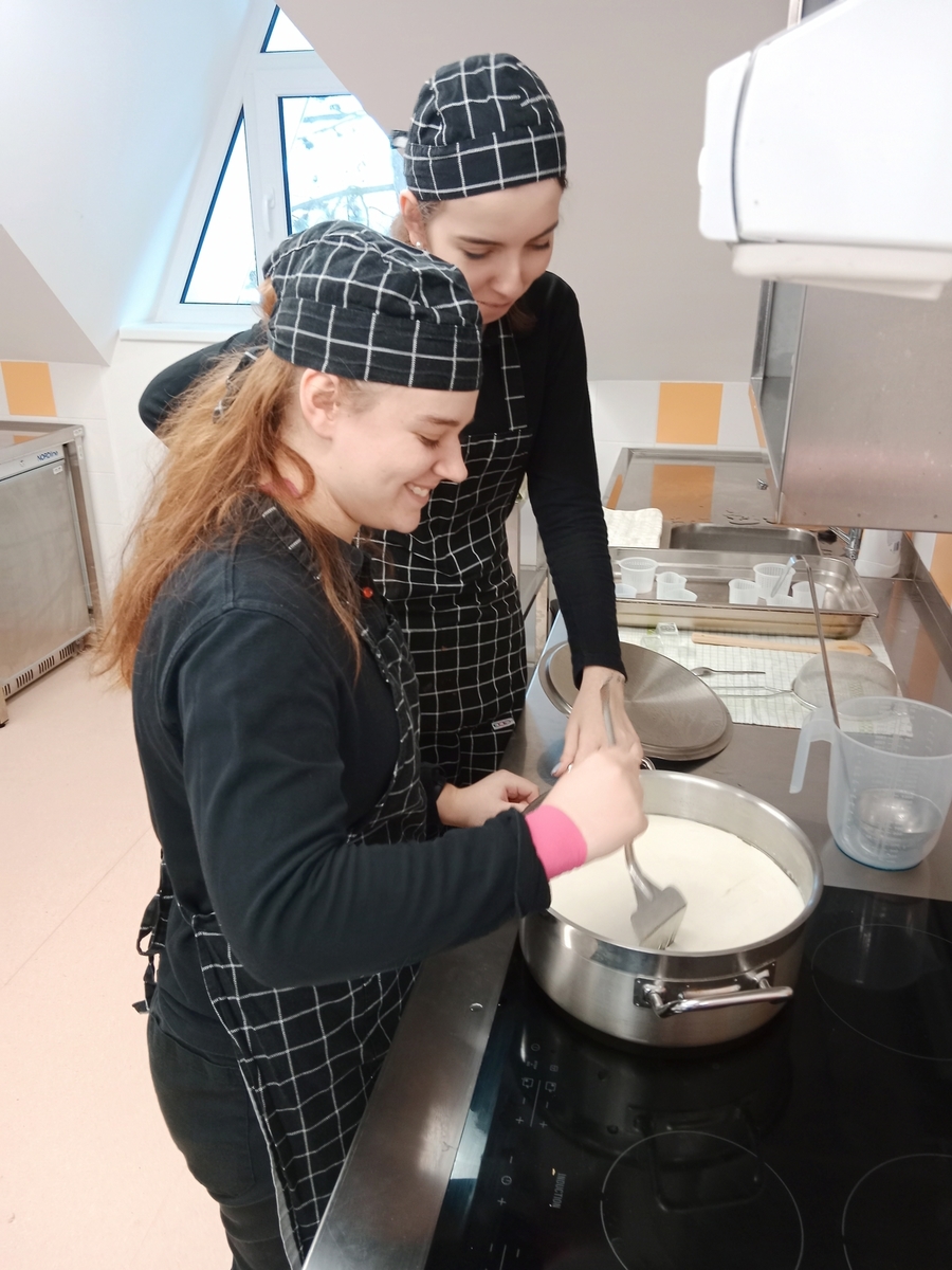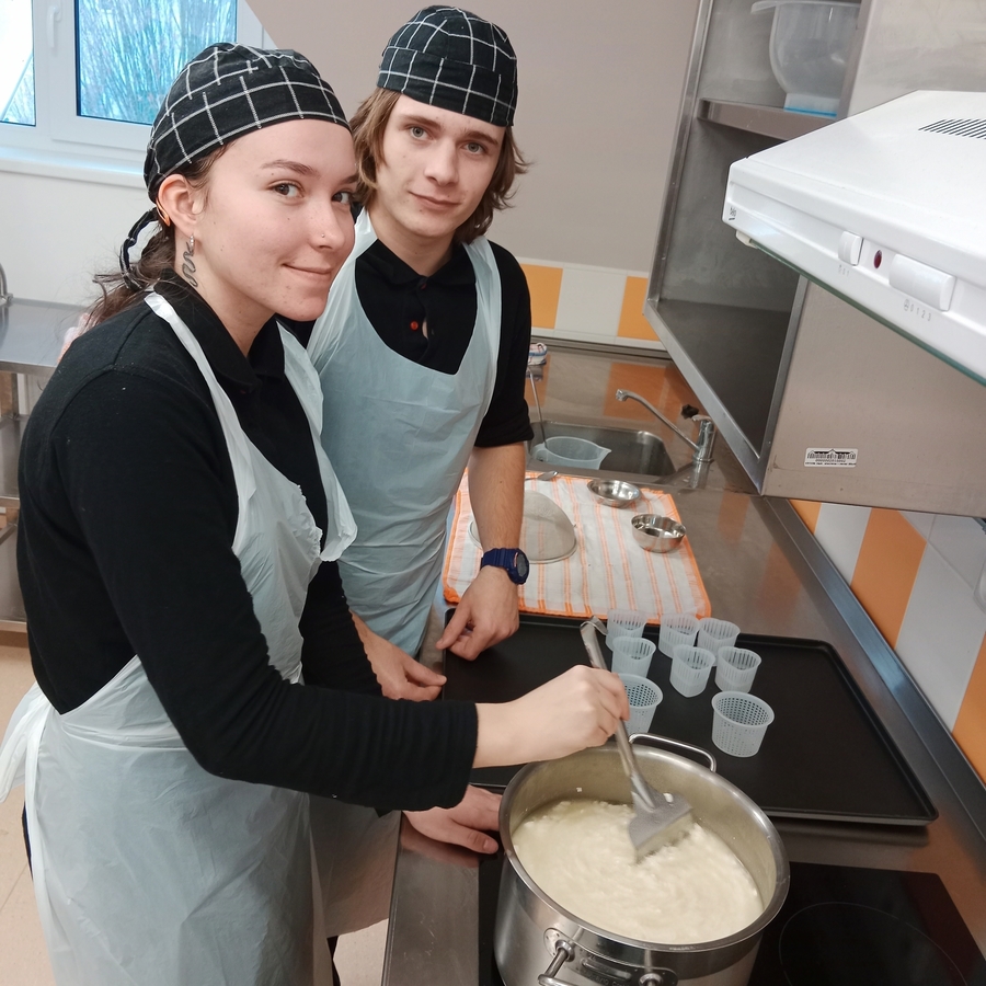 To vše jsme 20. prosince završili vlastní výrobou sýrů. Vyrobili jsme farmářské sýry, tažené sýry a ricottu.