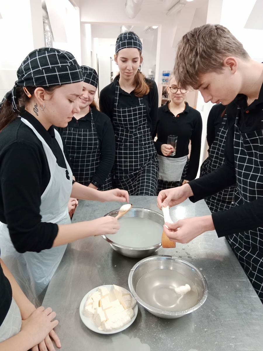 Během výroby jsme nahlédli pod pokličku práce sýrařů. Prakticky jsme si vyzkoušeli pasteraci, zrání a sýření mléka; formování i tvarování přírodních a tažených sýrů.